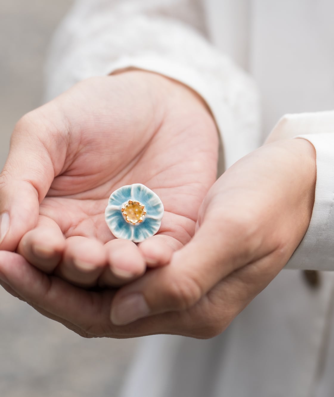 自然の中でふと心にとまる、美しいかたちや色。そんな瞬間のインスピレーションから生まれたシリーズ。やきもののぬくもりと自然の柔らかな表情が、身につけるたび優しい気持ちにしてくれます。