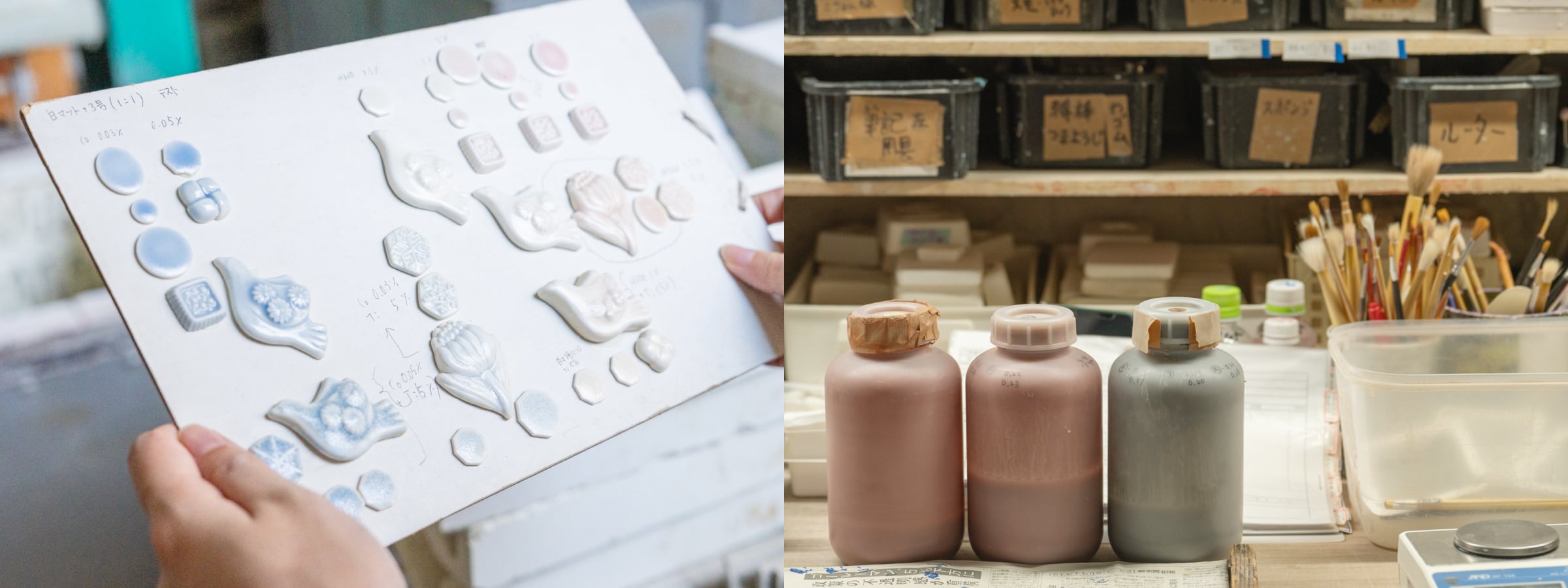 多治見のタイルメーカーから生まれた七窯社。職人が緻密に調整した型づくりから始まり、生地が生まれ、釉薬や焼成の試作を重ねることで、七窯社でしか表現できない製品が生まれています。その丁寧な作業の積み重ねが百種類以上の多彩な製品に宿ります。