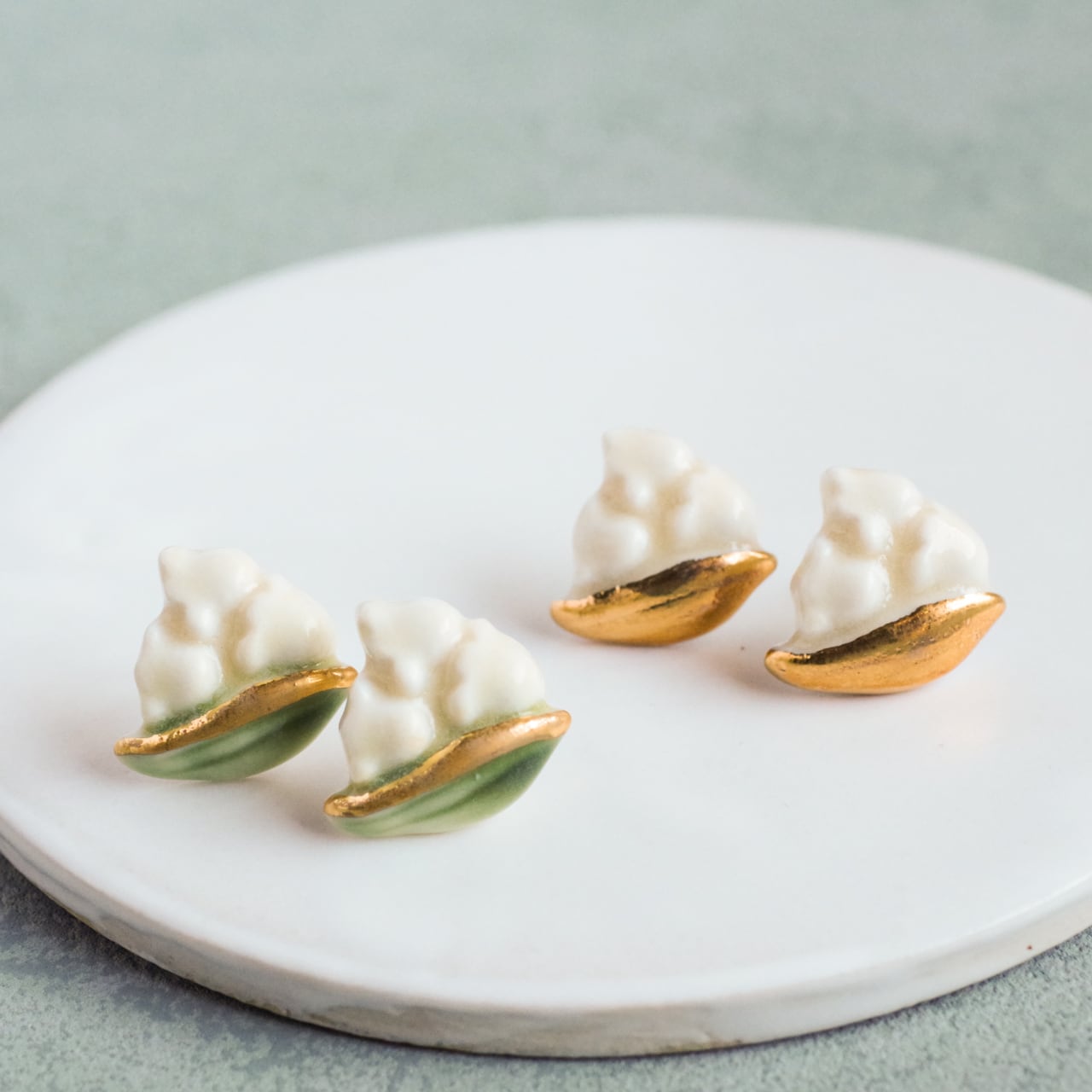 可憐な花を咲かせるすずらん。この花の魅力を引き出すよう、試作を重ねてフォルムを作りこみ、色付けにもこだわって、素朴でいて重厚な作品に仕上がりました。