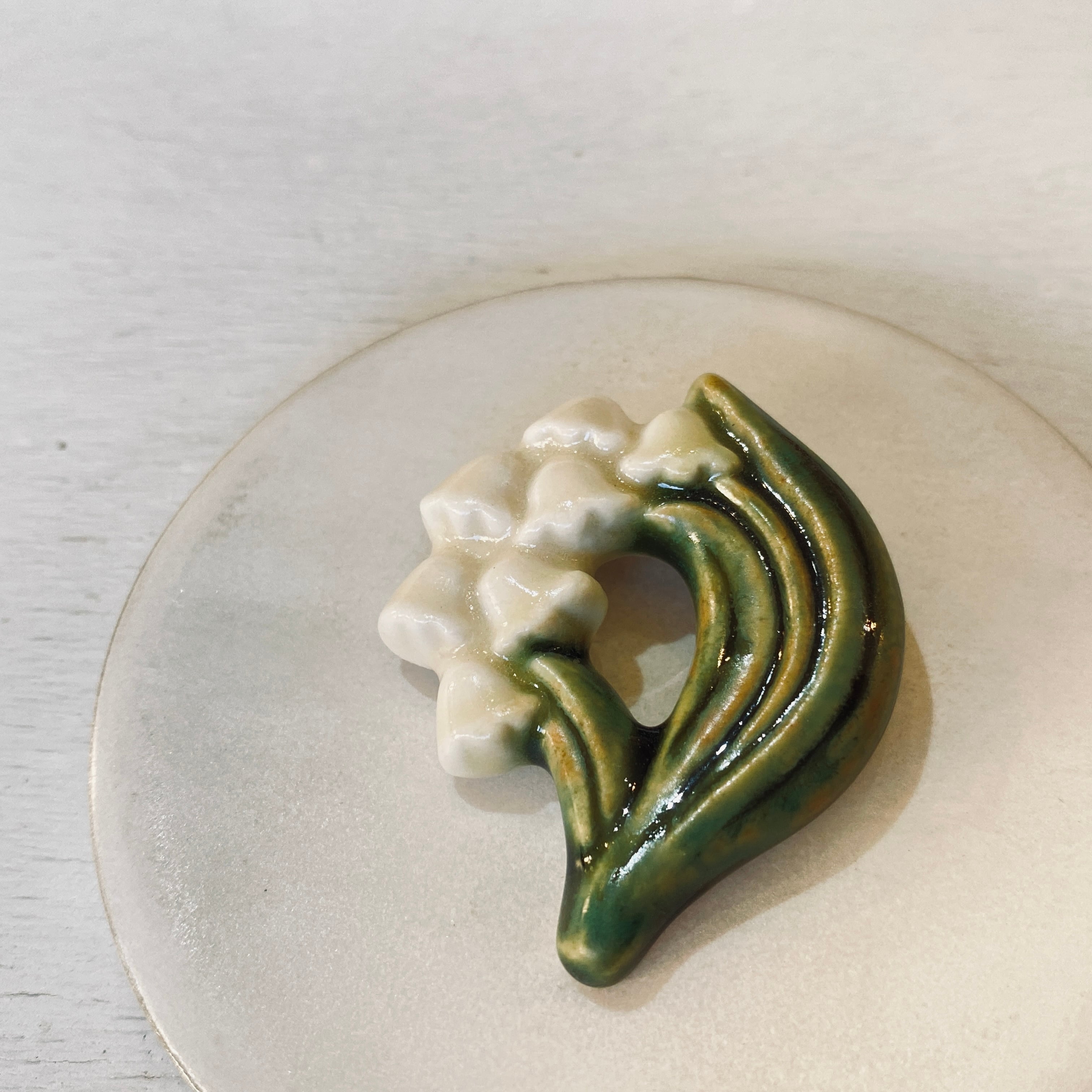 可憐な花を咲かせるすずらん。この花の魅力を引き出すよう、試作を重ねてフォルムを作りこみ、色付けにもこだわって、素朴でいて重厚な作品に仕上がりました。