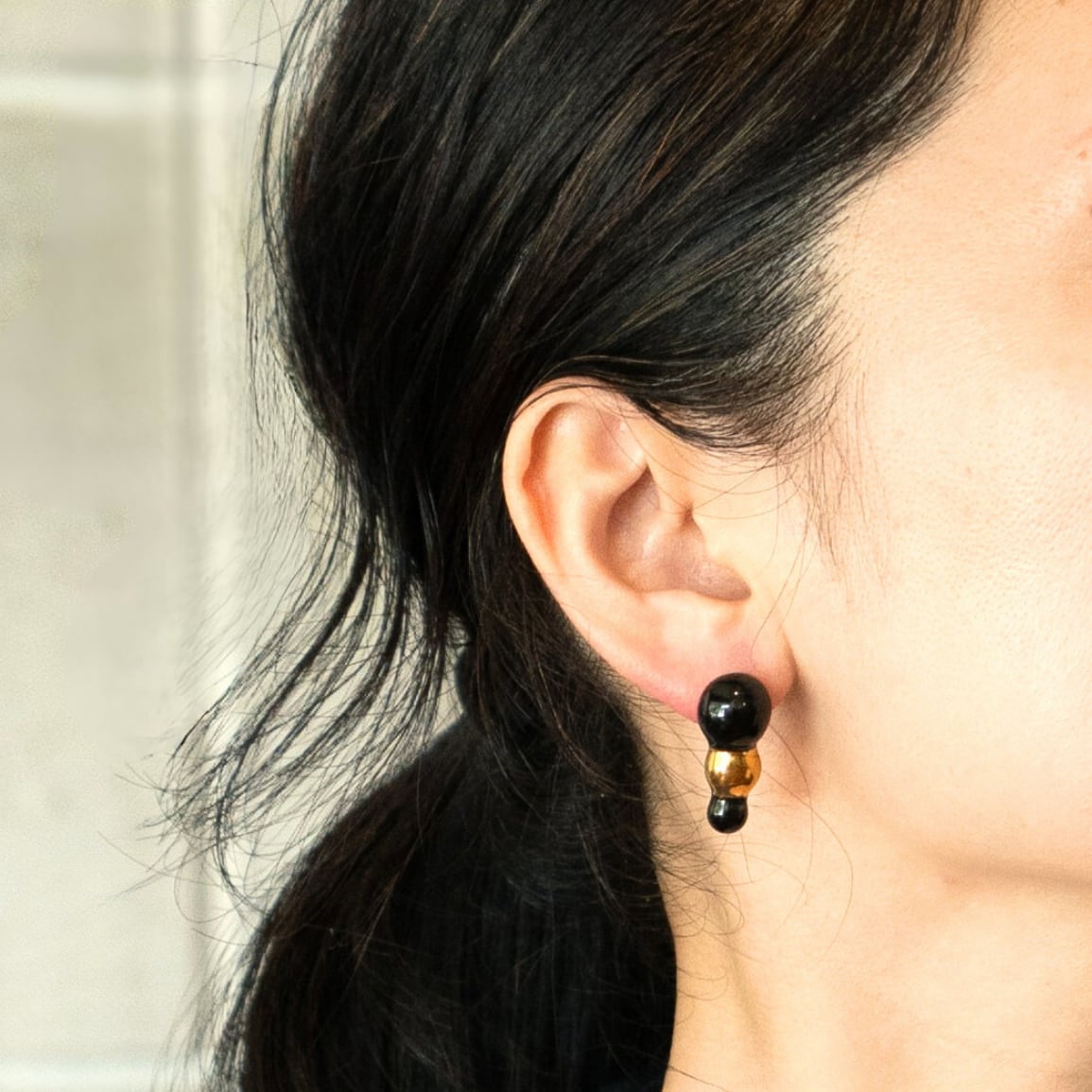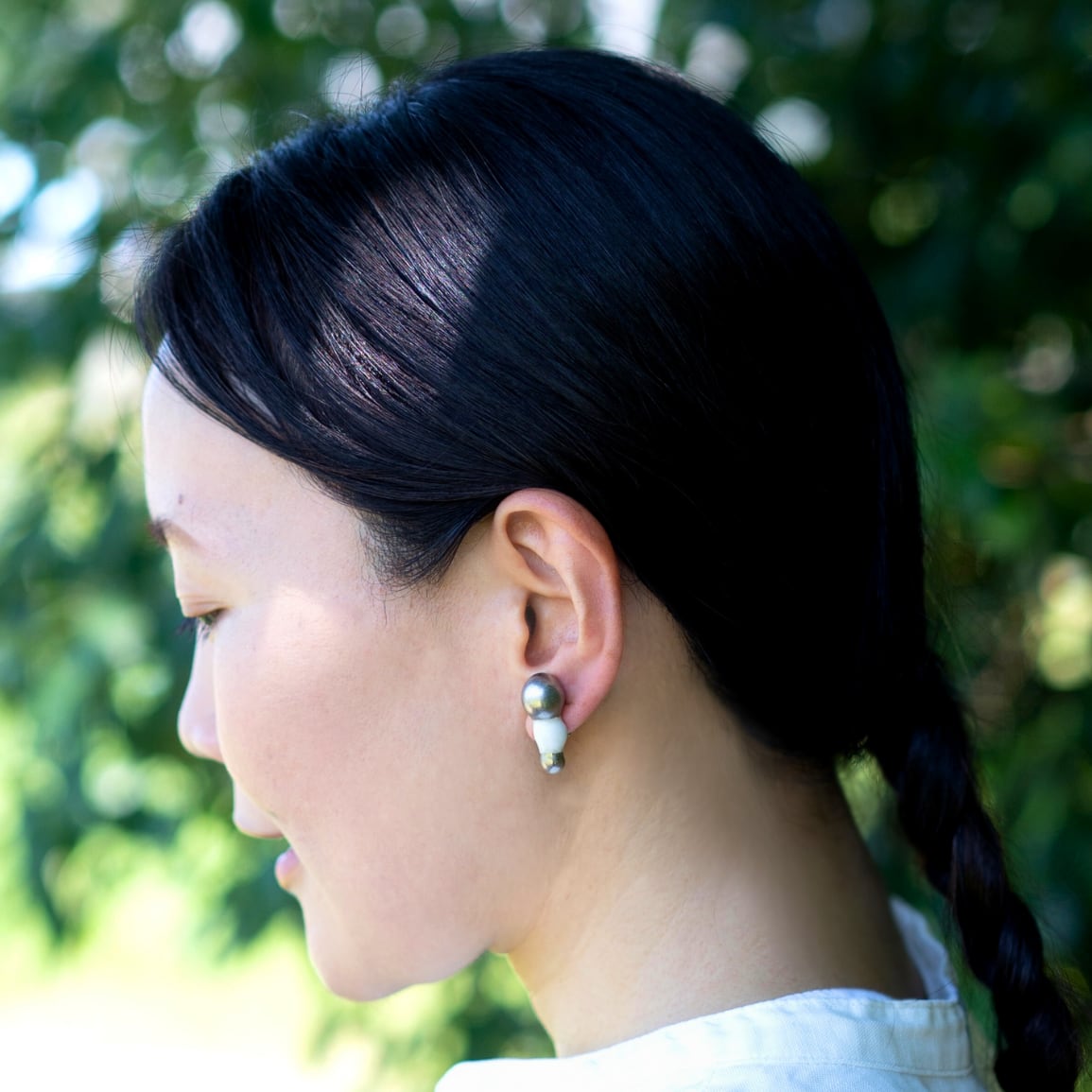 泡がモチーフの作品。2色展開ですが、それぞれ異なるタイプに仕上がりました。クールに装いたいときにはツヤ感のある黒。一方白は、華やか&清楚なコーデにおすすめです。