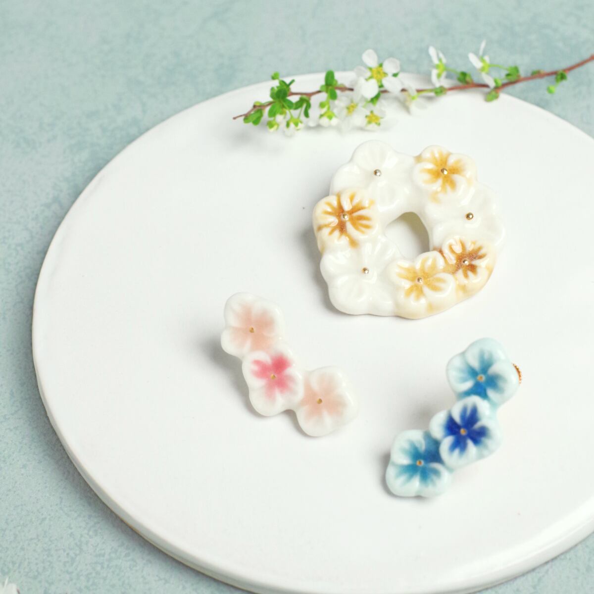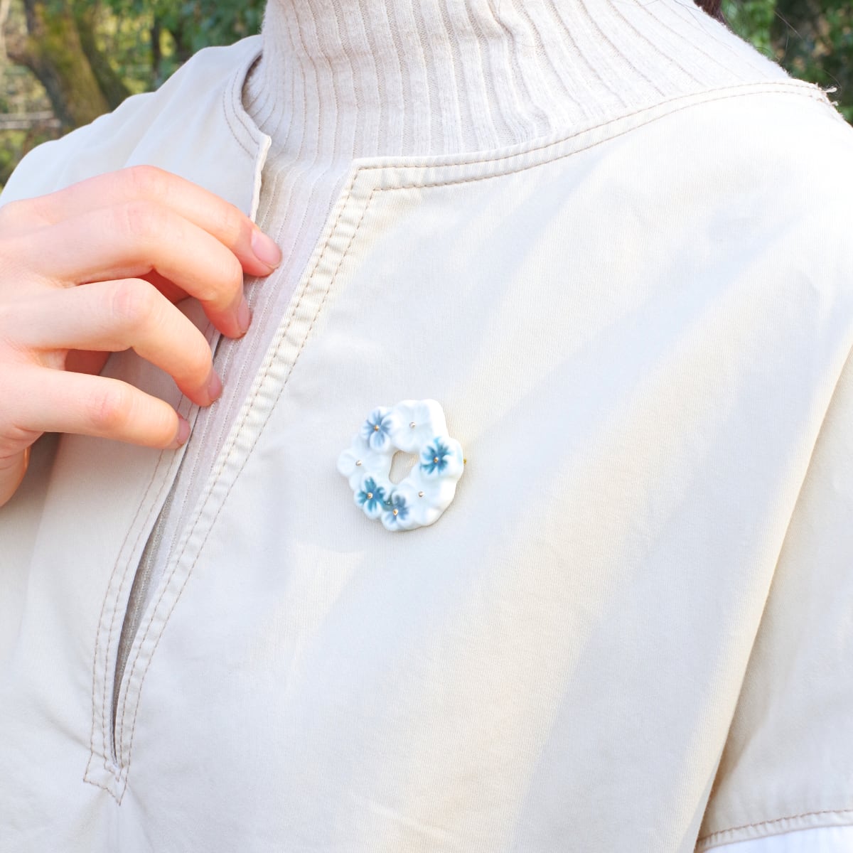 お花を編んで花冠を作った時のあのときめきを、ブローチに込めました。