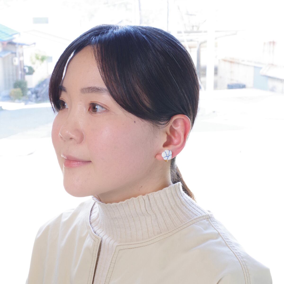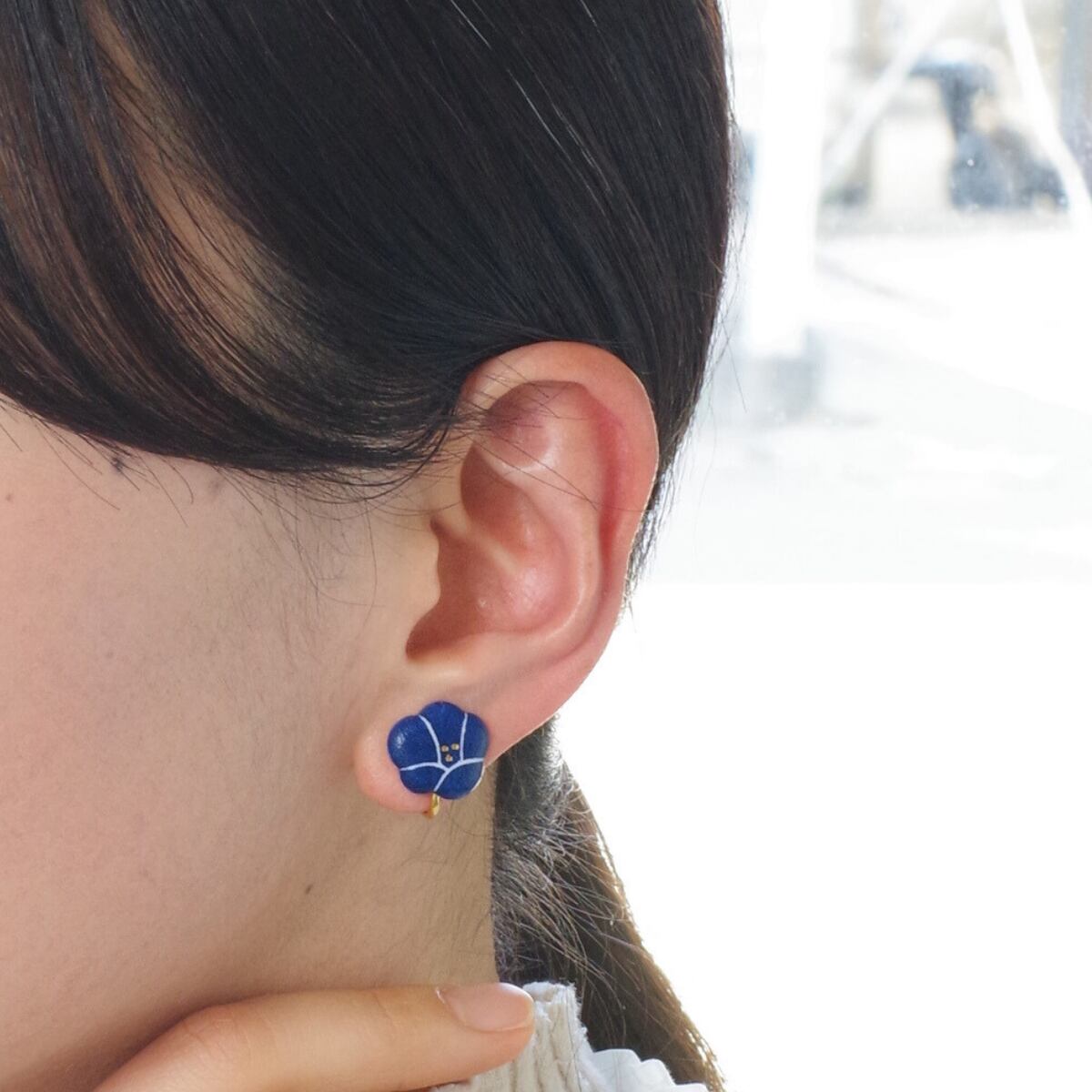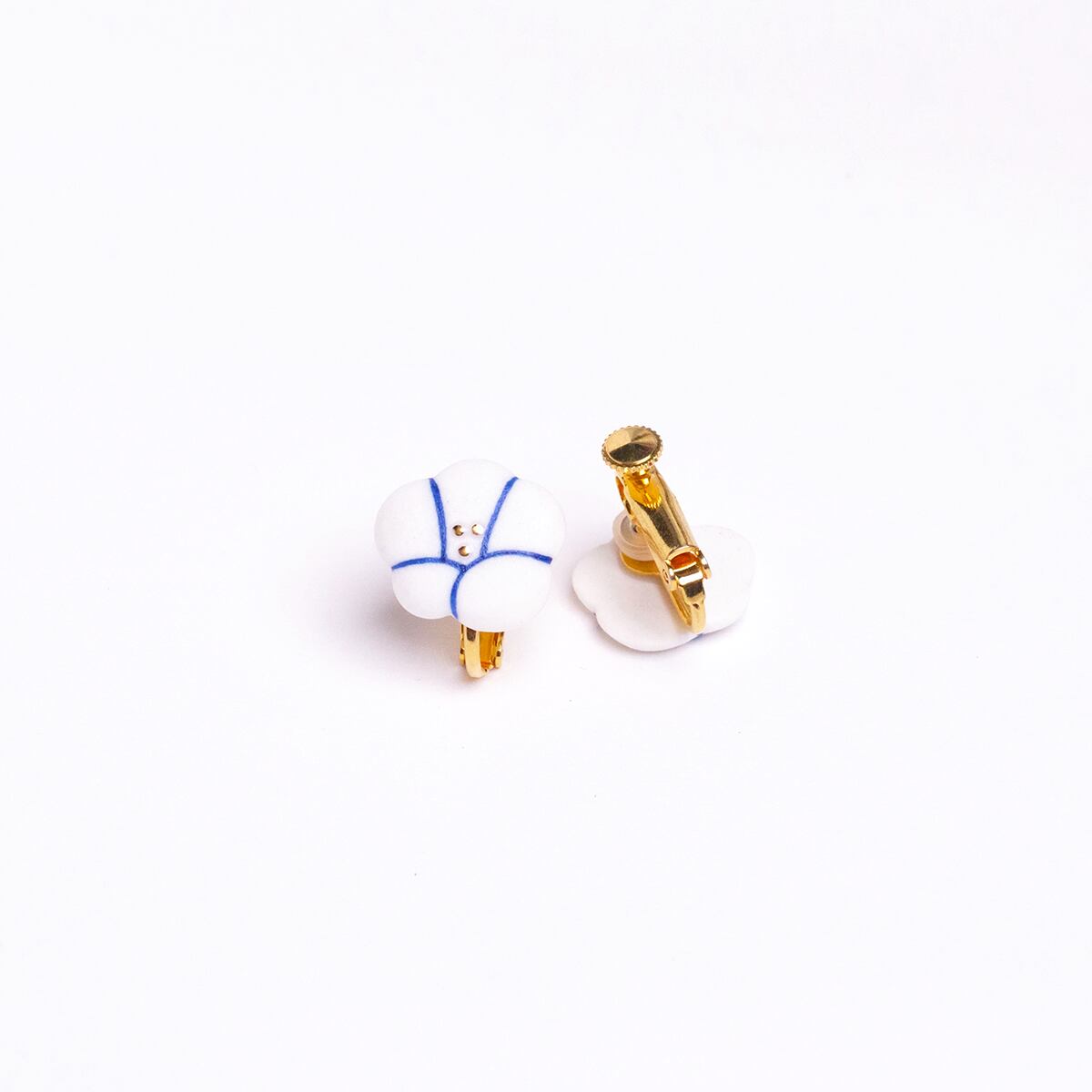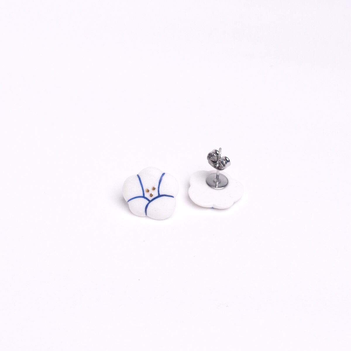 ころんと丸みのあるフォルムで咲く、凛とした梅の花。柔らかさをまといながら、青と白のコントラストですっきりとした品の良さを演出。シンプルな装いにぴったりです。