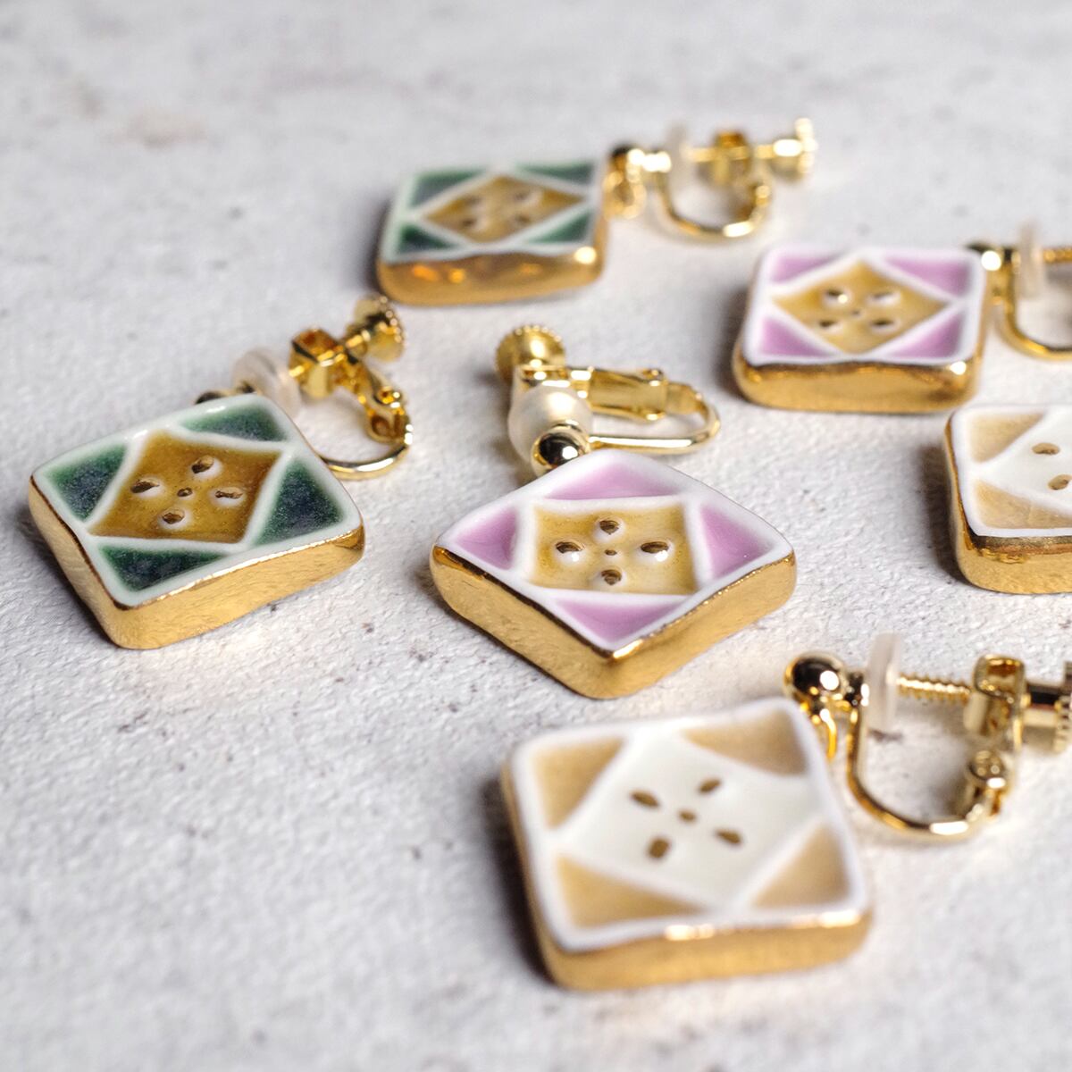 モザイクタイルをモチーフにした、上品で華やかなアクセサリー。