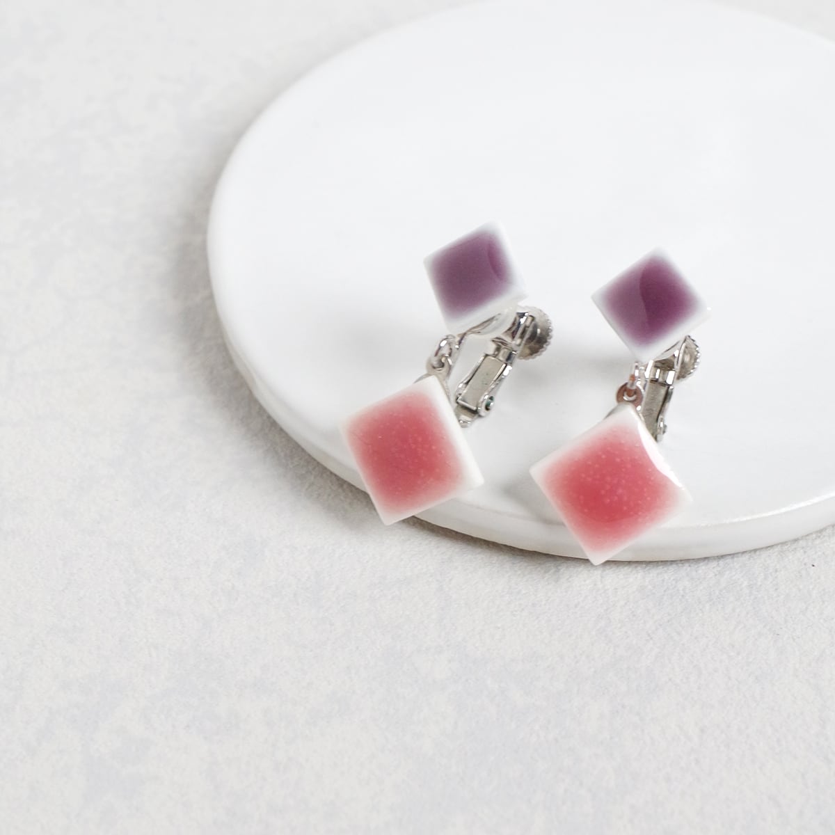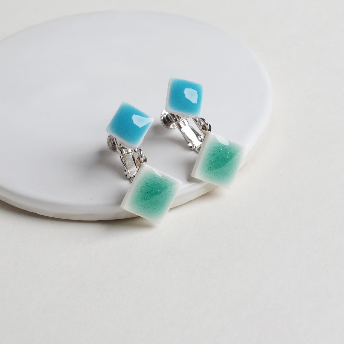 春・夏・秋・冬の色を2つ重ねました。小さなタイルが連なった揺れるタイプ。