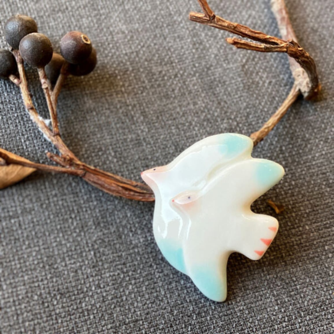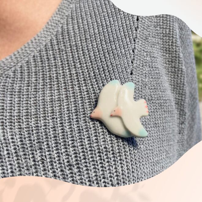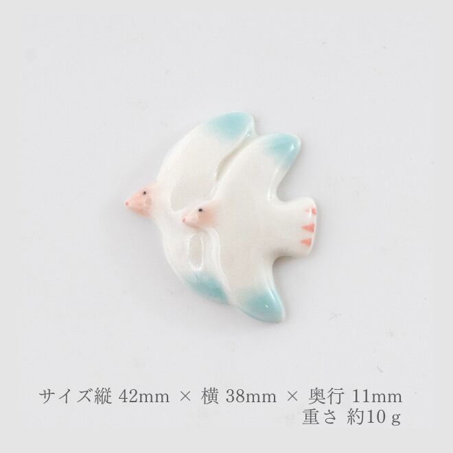 平和の象徴とされるハトは、広島在住のデザイナーだからこそいっそう思い入れのあるモチーフです。また、ハトは一生涯パートナーを変えることなく添い遂げると言われることから、つがいのハトは夫婦円満の象徴ともされています。