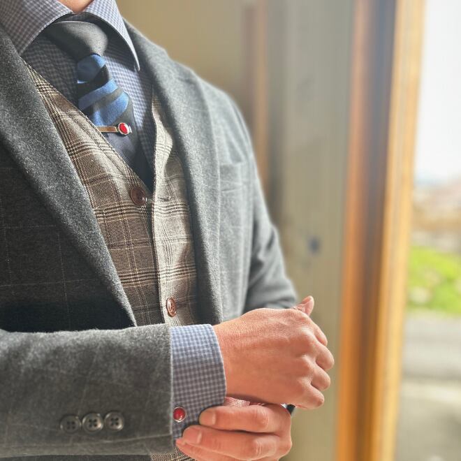 タイルのカフスを作りました。シックな色合いが、どんなシャツとも相性抜群です。
